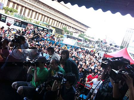 「偶像劇歌姬」丁噹將於12/10首度站上台北小巨蛋,舉辦「歌舞線上」世界巡迴演唱會,目前售票已超過九成,票房成績相當亮眼,為了感謝歌迷的熱情支持,丁噹特地於今日(6日)在台北車站前的數位城戶外廣場舉辦感恩簽票會,吸引數百名歌迷到場支持,將現場擠得水瀉不通。丁噹今日一早原訂由廈門起飛轉機香港抵台的班機因故延遲,擔心趕不上下午三點鐘台北的簽票會,所有妝髮師及工作人員通通臨時趕往桃園機場待命,待丁噹一入關即火速飛奔上車直達簽票會現場,雖然讓簽票會延後近半小時才開始,但所有歌迷見到丁噹仍開心尖叫歡呼。